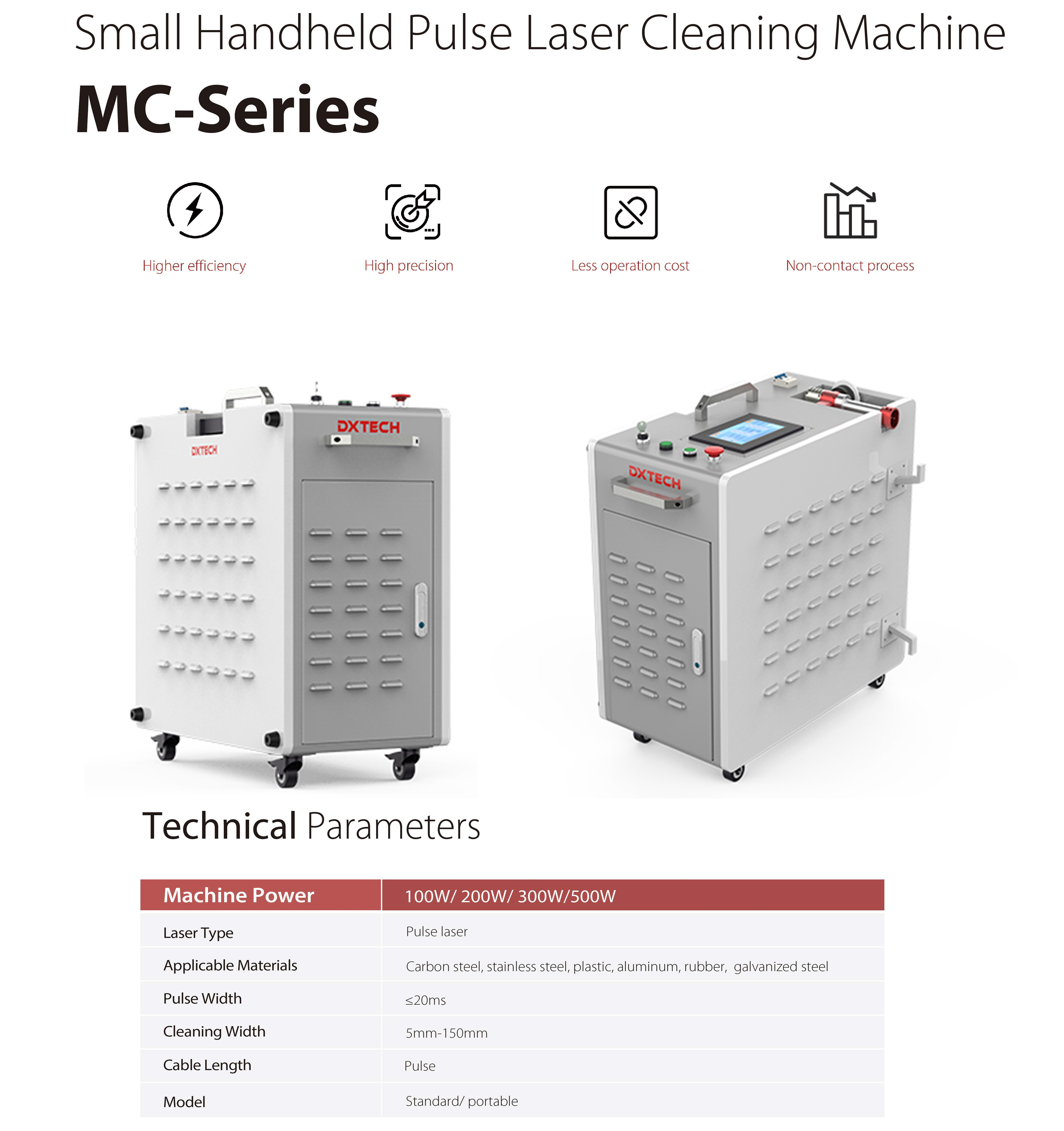 This handheld laser cleaning machine can quickly remove dust, coating, painting, oil and other contaminants on the surface of work pieces. It is designed as a handheld model or could be robotic mounted. The handheld cleaning gun is light and easy to carry. Users can hold the cleaning gun and clean any specific positions as needed. Also, there are no restrictions on cleaning size or cleaning angle. This machine can clean flat surfaces, curved surfaces and complex geometric shapes from various angles. Moreover, it shows high cleaning precision in aluminum surface cleaning, iron dust removal, stone dust removal, painting removal, etc. This handheld fiber laser cleaning machine is widely used in the automobile industry, shipbuilding industry, electronics industry, tire industry, rubber mold industry, airospace etc.